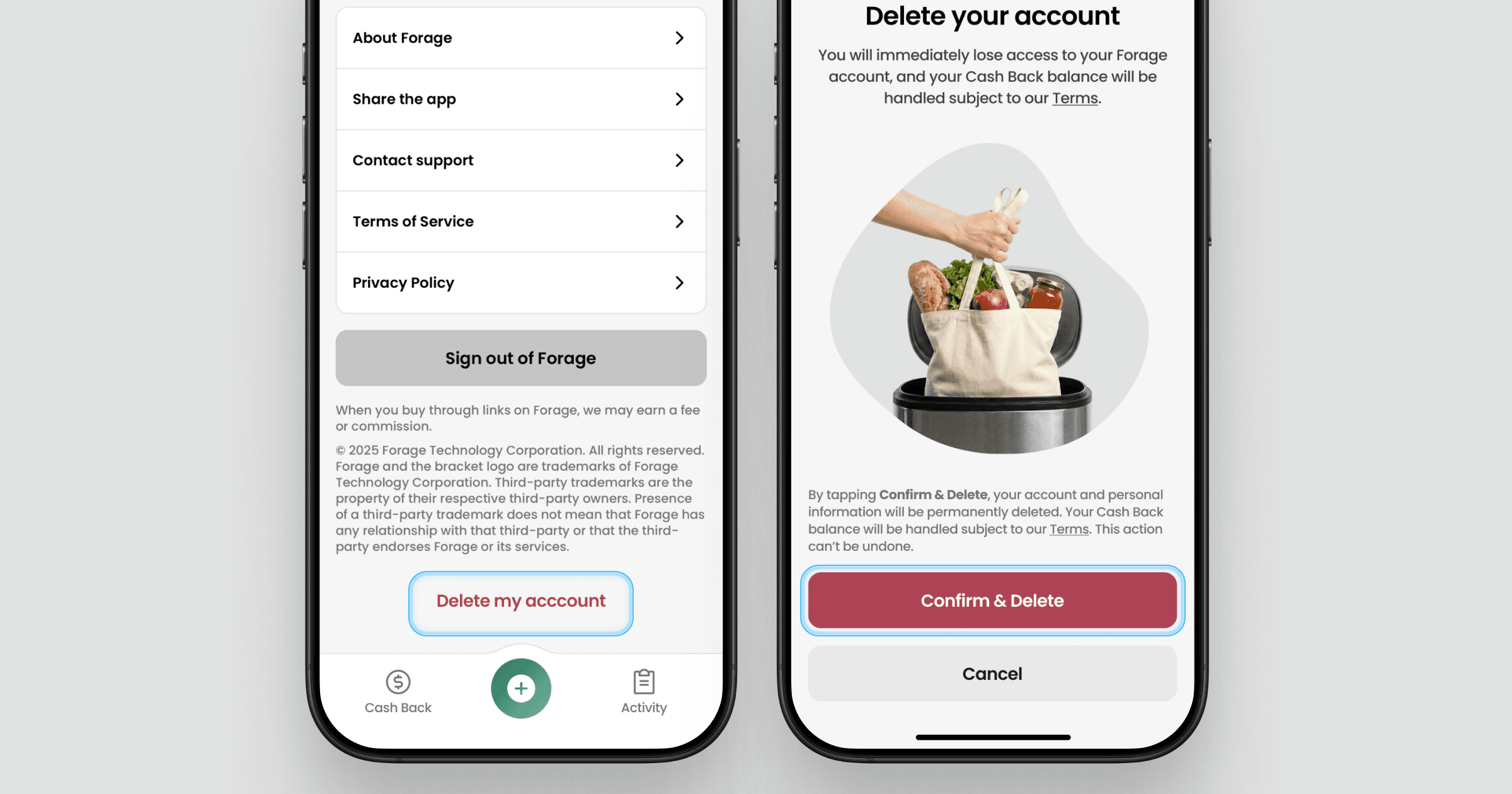 If you’re unsure about deleting your account or have questions about what happens next, contact Forage Support from the app and we’ll help explain your options.