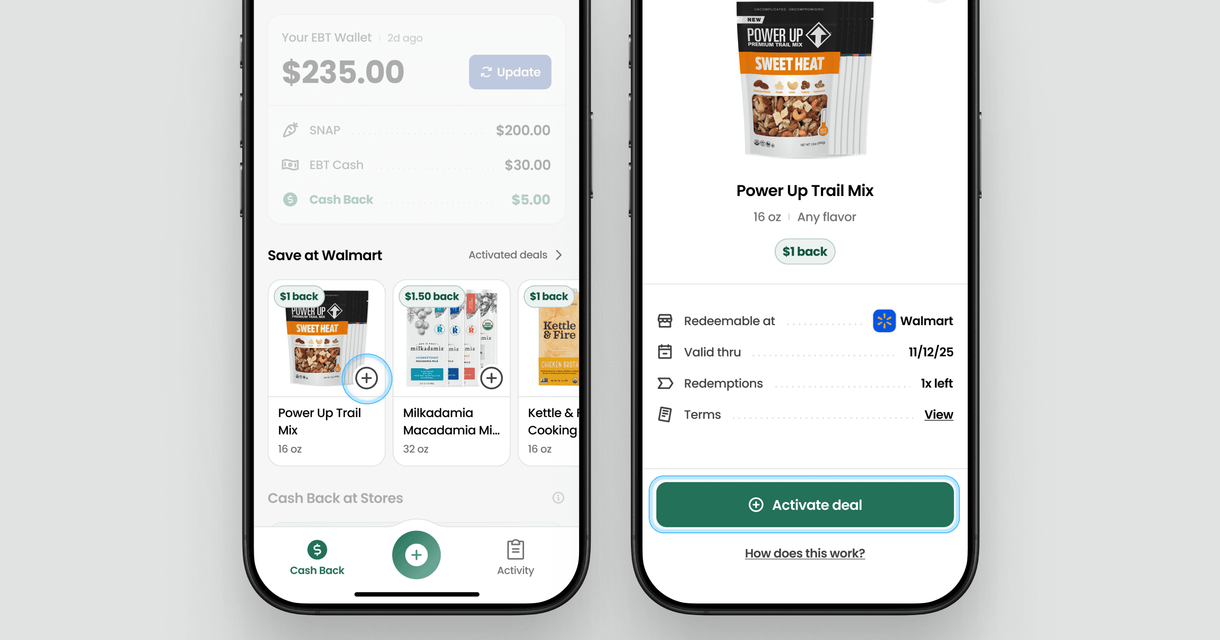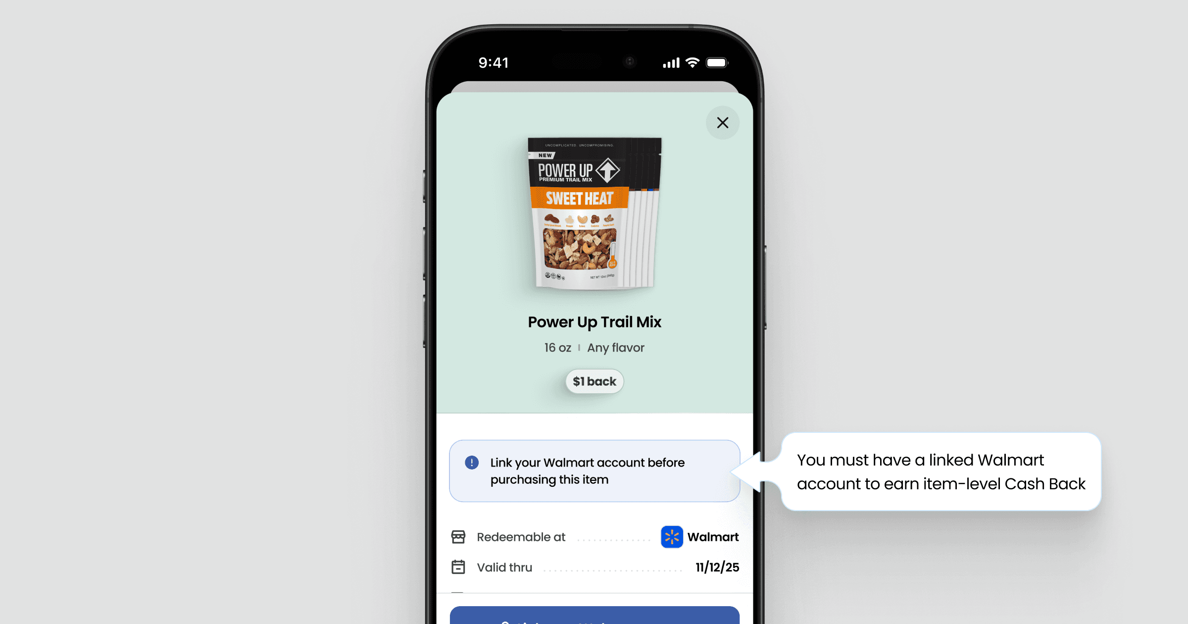 Item offers let you earn Cash Back on specific grocery products when you buy them at Walmart. Unlike store-wide Cash Back, item offers do not require you to pay with EBT.